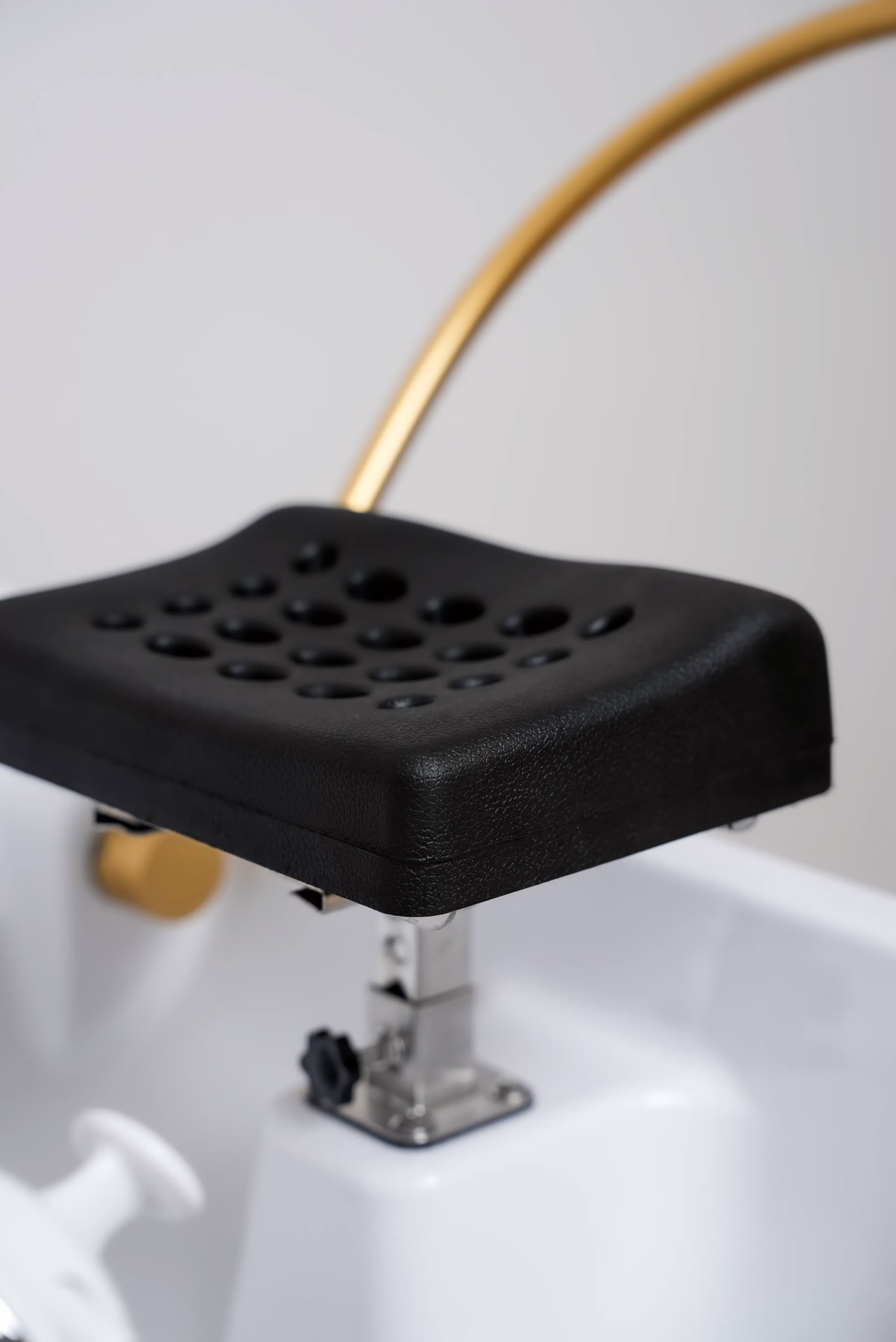 Dzięki kompaktowej i mobilnej konstrukcji, myjkę można dostawić do dowolnej leżanki, tworząc funkcjonalne stanowisko Head Spa bez konieczności stałej instalacji.